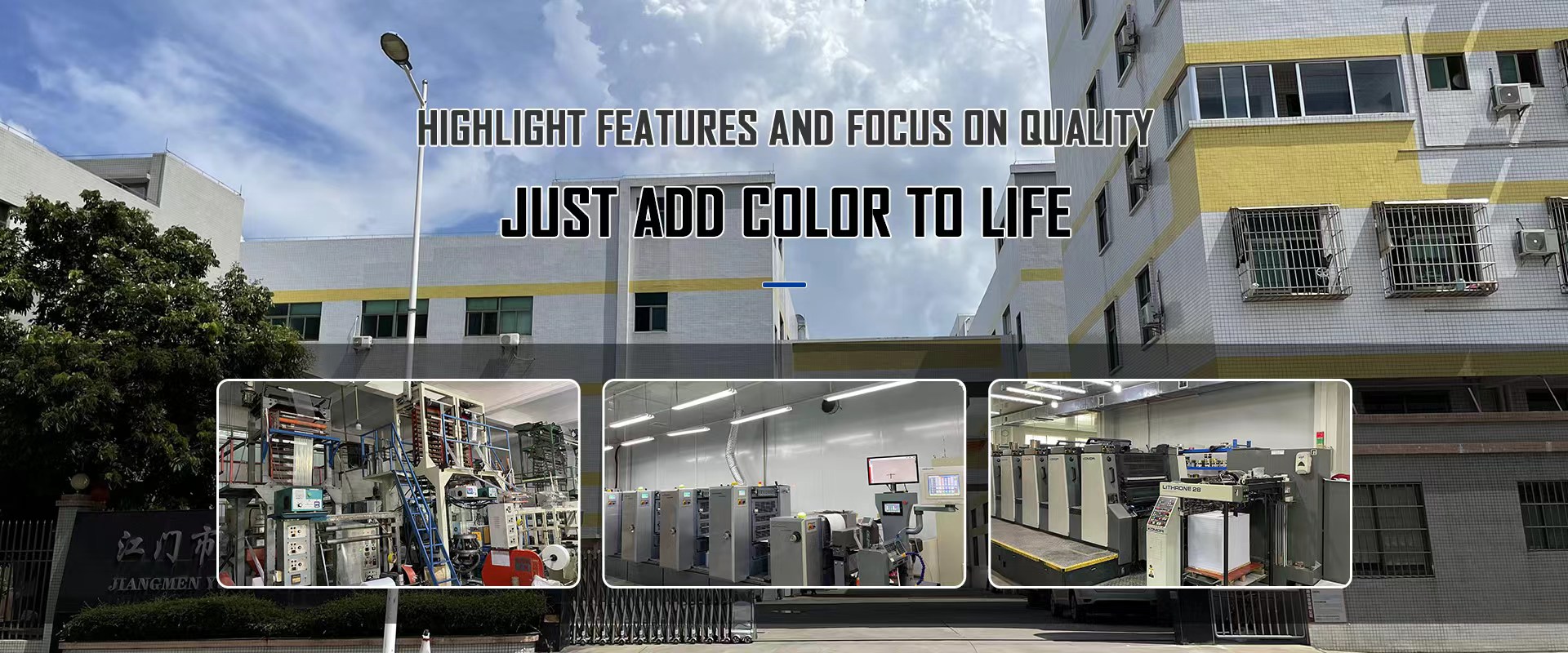 廣東省江門市江海區(qū)裕輝彩色包裝印刷有限公司,創(chuàng)建于1996年。位于珠江三角州著名的僑鄉(xiāng)城市——江門市。從佛開高速、中江高速、江肇高速江門龍灣出口驅(qū)車五分鐘至禮樂北頭咀工業(yè)開發(fā)區(qū)即到,交通非常便利。本公司廠區(qū)獨立,環(huán)境優(yōu)美,占地面積愈8000平方米,廠房建筑面積愈22500平方米。本公司引進了多套國內(nèi)最先進技術(shù)水平的塑料彩印復(fù)合生產(chǎn)設(shè)備,包括8色全自動電腦套色高速印刷機、高速復(fù)合機、分切機、多用途全自動電腦制袋機,檢品機、噴碼機,全套檢測試驗儀等。具備了國內(nèi)同行業(yè)最優(yōu)良的硬件設(shè)施。在公司150多名管理、生產(chǎn)人才的努力下,我公司已儼然成為了一個集國內(nèi)軟包裝行業(yè)最優(yōu)秀硬件于一體的,適應(yīng)市場發(fā)展需要的,品質(zhì)一流,優(yōu)良服務(wù)的現(xiàn)代企業(yè)。是目前珠三角最現(xiàn)代化、最具發(fā)展前景的軟包裝企業(yè)之一。公司生產(chǎn)加工各類塑料彩印復(fù)合包裝產(chǎn)品、袋子及精美廣告等。主要制造純鋁、鍍鋁、塑料等包裝膜/袋。為食品、電子產(chǎn)品、服裝、日用品、化妝品、五金制品、農(nóng)藥、獸藥、等行業(yè)提供各種塑料復(fù)合袋及塑料復(fù)合膜的生產(chǎn)和印刷??筛鶕?jù)廠家需要,進行包裝規(guī)格圖案設(shè)計和生產(chǎn);為適應(yīng)市場各種需求,我司還開發(fā)多種防偽技術(shù),例如有:激光鐳射防偽技術(shù)(已獲國家專利)、光變防偽油墨印刷技術(shù)、噴碼防偽技術(shù)和溫變油墨技術(shù)等。